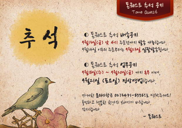 9¿ù 18ÀÏ ºÎÅÍ 9¿ù 20ÀÏ ±îÁö Ãß¼® ÈÞ¹«ÀÔ´Ï´Ù.