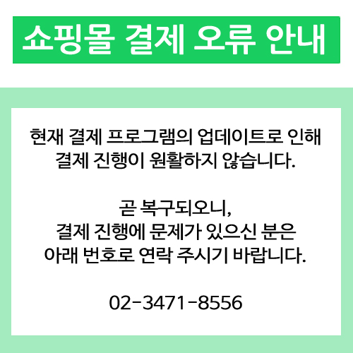 °áÁ¦ ÁøÇà ¿À·ù ¾È³» ¼îÇθôÀÇ °áÁ¦ ½Ã½ºÅÛ Á¡°ËÀ¸·Î ÀÎÇØ ¿À·ù°¡ ¹ß»ýÇÒ ¼ö ÀÖ½À´Ï´Ù.°áÁ¦ ÁøÇà¿¡ ¹®Á¦°¡ ÀÖÀ¸½Å ºÐÀº ¾Æ·¡ ¹øÈ£·Î ¿¬¶ôÁֽñ⠹ٶø´Ï´Ù.02-3471-8556°¨»çÇÕ´Ï´Ù.