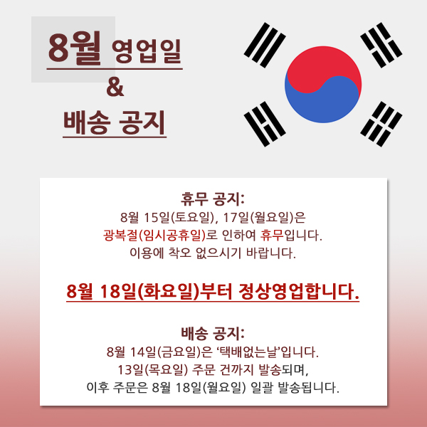 ÀÌÈÄ ÁÖ¹®Àº 8¿ù 18ÀÏ(¿ù¿äÀÏ) Àϰý ¹ß¼ÛµË´Ï´Ù.
